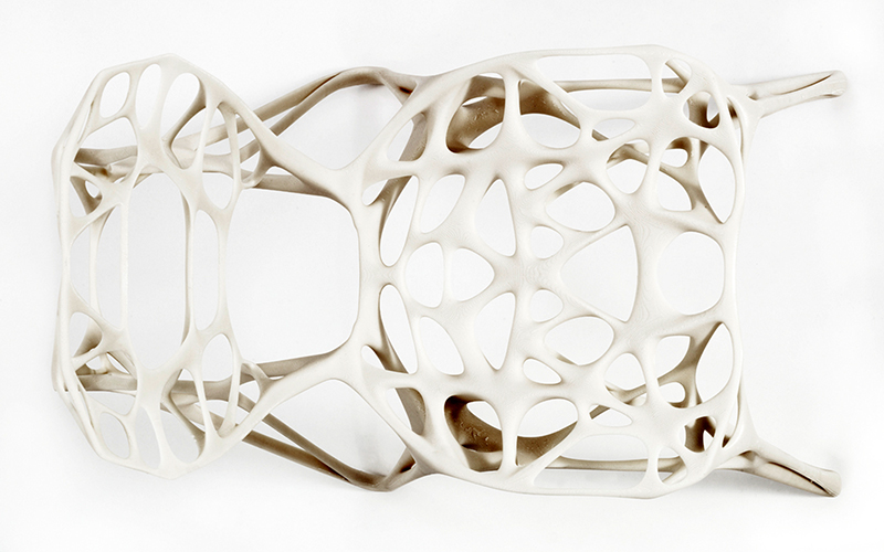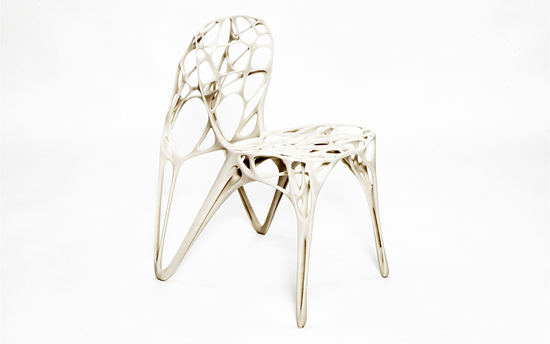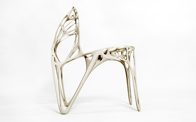 Generico is a prototype for a new way of design thinking, developed with a holistic approach using latest technologies. The design is based on the requirements of comfortable sitting and responds to load forces and ergonomic conditions. The chair – resulting from an all-embracing line of thought, from design to production, is an ideal field of application for 3D-printing-technology as it allows for an optimal material distribution. The result of this visionary design approach is a pioneering example, showing the future potential of this production process. The generative form-finding process takes into account structural performance, material properties and ergonomic demands as well as parameters of production. In order to accommodate the idea of a generative design development the concept for the realization is based on generative/additive manufacturing technologies. In a first step the constraints for the form generation were defined in a parametrical 3D-model. Next to ergonomically relevant aspects – like seating height, position and angle of the backrest as well as direction of motion – structural parameters were integrated in the modelling strategy.
